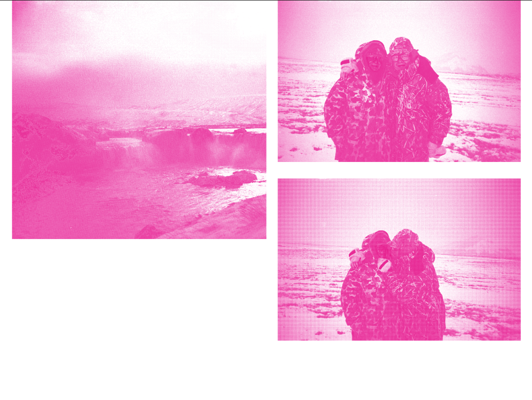 Iceland In undertakes the struggle to save memories by dissecting photographs into the layers of pigment that it was formed from. Cyan, Magenta, Yellow, and Black.